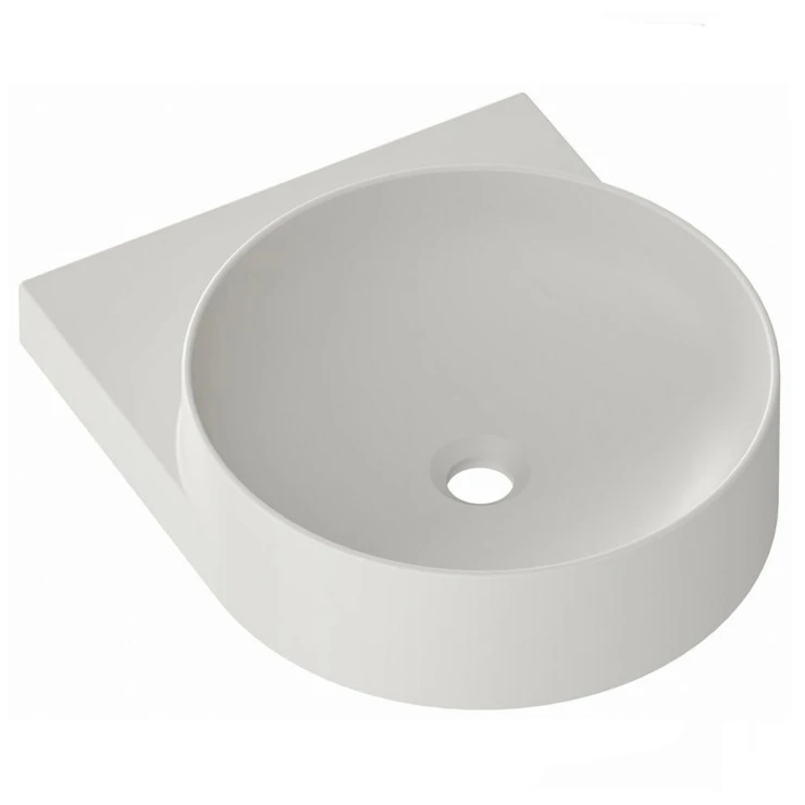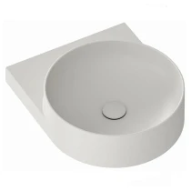 Yard tunnväggigt keramiskt tvättställ med hål för däckmonterad blandare, Yard-konsol, utan bräddavlopp, Flat fast bottenventil.