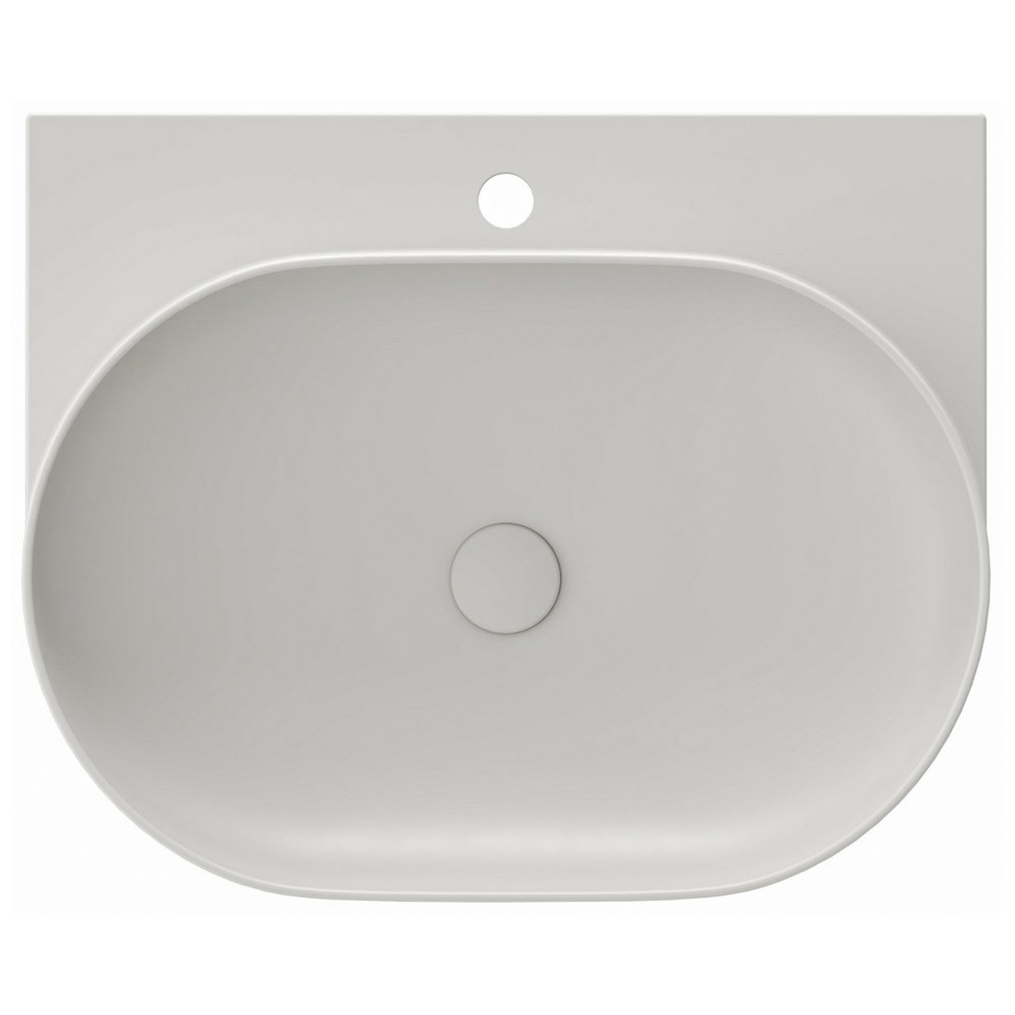 Yard tunnväggigt keramiskt tvättställ med hål för däckmonterad blandare, Yard-konsol, utan bräddavlopp, Flat fast bottenventil.