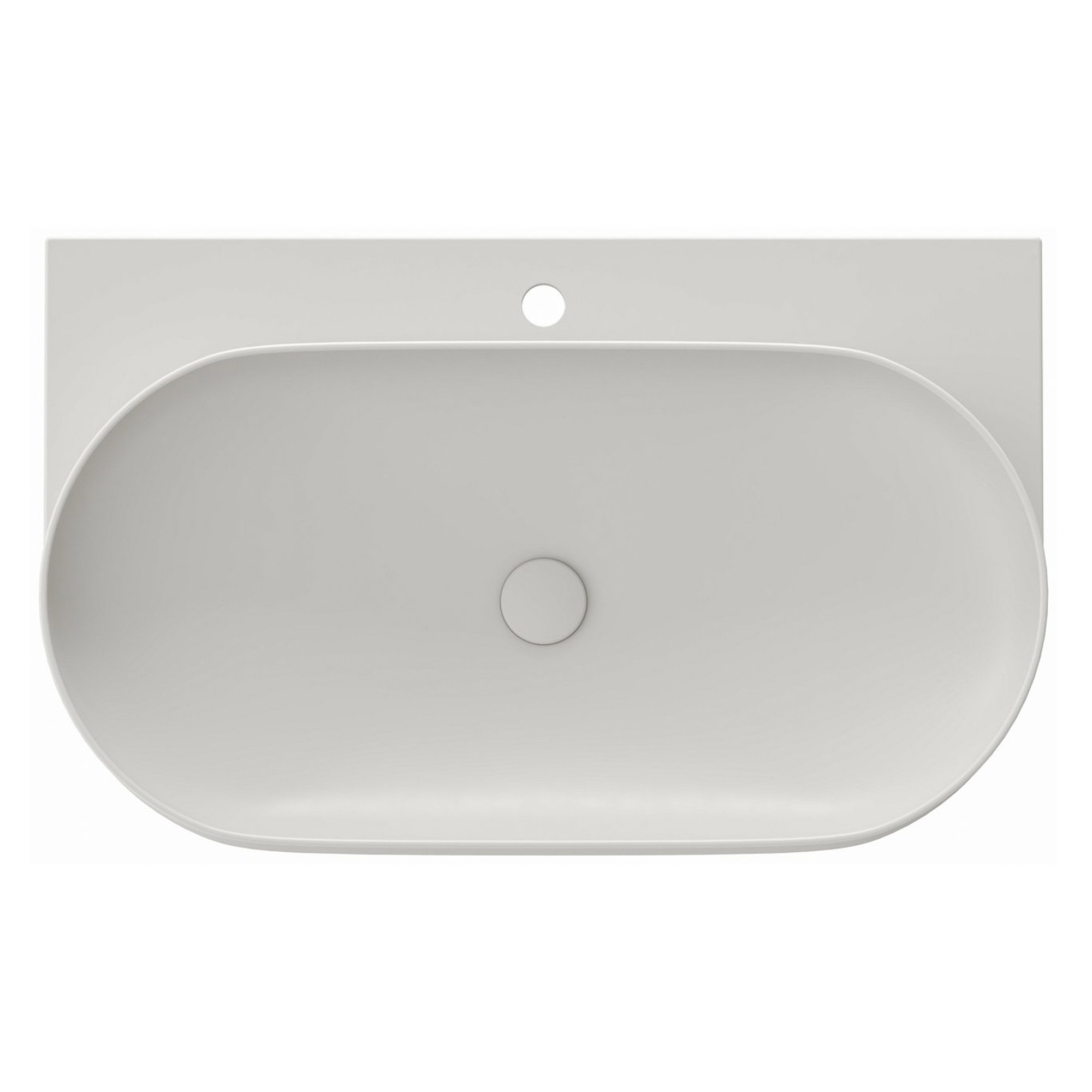 Yard tunnväggigt keramiskt tvättställ med hål för däckmonterad blandare, Yard-konsol, utan bräddavlopp, Flat fast bottenventil.