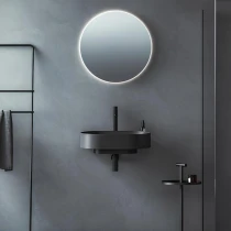 • -Stabilt stöd, inga möbler behövs: Yard installeras direkt på väggen med en stålkonsol, vilket eliminerar behovet av ytterligare möbler. Konsolen matchar tvättställets form och förbättrar helhetsintrycket.
