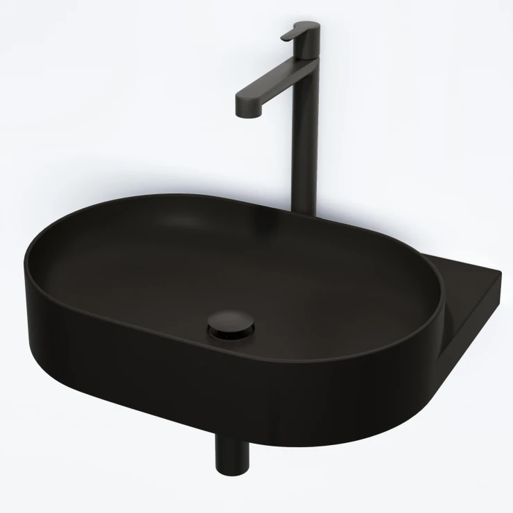 Ravak Tvättställ Svart Yard 60 cm med Svart Konsol, Vattenlås och Bottenventil