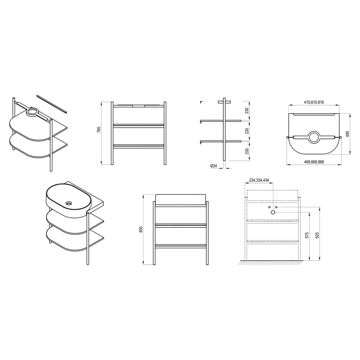 Den öppna Yard-möbeln består av en stabil metallram och två hyllplan. Den fristående metallstrukturen med hyllor CS Yard 40 är specifikt designad för Yard 40-tvättstället. Strukturen är utrustad med ett hål för vattenlåset samt stabiliserande fötter. Hyllorna följer perfekt tvättställets form och erbjuder gott om förvaringsutrymme. Produkten måste säkras mot väggen. Levereras omonterad.