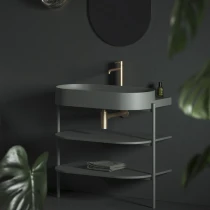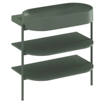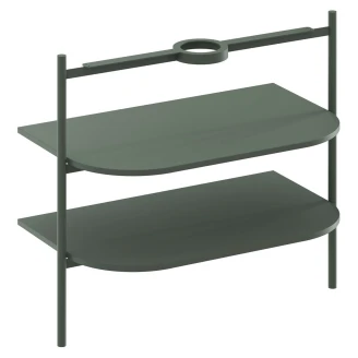 Den öppna Yard-möbeln består av en stabil metallram och två hyllplan. Den fristående metallstrukturen med hyllor CS Yard 40 är specifikt designad för Yard 40-tvättstället. Strukturen är utrustad med ett hål för vattenlåset samt stabiliserande fötter. Hyllorna följer perfekt tvättställets form och erbjuder gott om förvaringsutrymme. Produkten måste säkras mot väggen. Levereras omonterad.