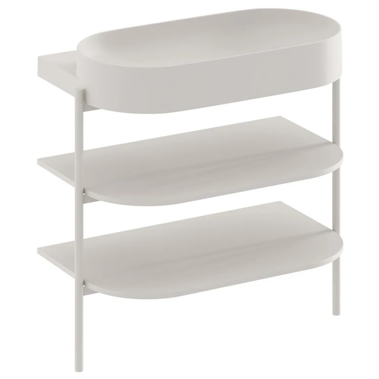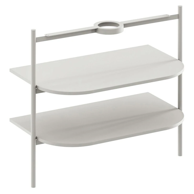 Den öppna Yard-möbeln består av en stabil metallram och två hyllplan. Den fristående metallstrukturen med hyllor CS Yard 40 är specifikt designad för Yard 40-tvättstället. Strukturen är utrustad med ett hål för vattenlåset samt stabiliserande fötter. Hyllorna följer perfekt tvättställets form och erbjuder gott om förvaringsutrymme. Produkten måste säkras mot väggen. Levereras omonterad.