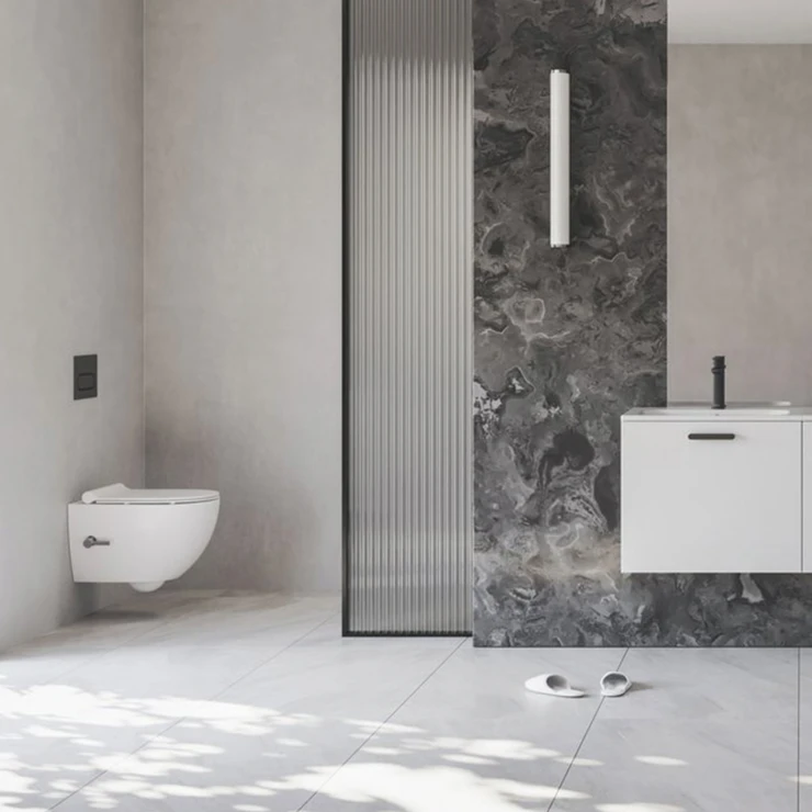 Vi har ersatt traditionella monteringsmetoder för toaletter, där synliga fästelement ingår, med det innovativa EasyFix-dolda monteringssystemet, där toaletten monteras uppifrån genom sitsens hål. En av dess främsta fördelar är estetiken, eftersom inga synliga skruvar eller fästen stör helhetsintrycket.