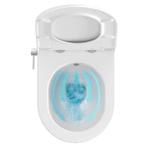 Uni Chrome-bidétoaletten erbjuder en ren och hygienisk miljö. Skålen utan spolkant har inga områden där smuts kan samlas. Tack vare den förfinade inre formen garanteras en perfekt spolning. Det är en idealisk lösning för den som värdesätter perfekt renlighet, hygien och enkel skötsel. Toaletten är designad för att ge dig maximal komfort och trygghet, med vetskapen om att den alltid är helt ren.