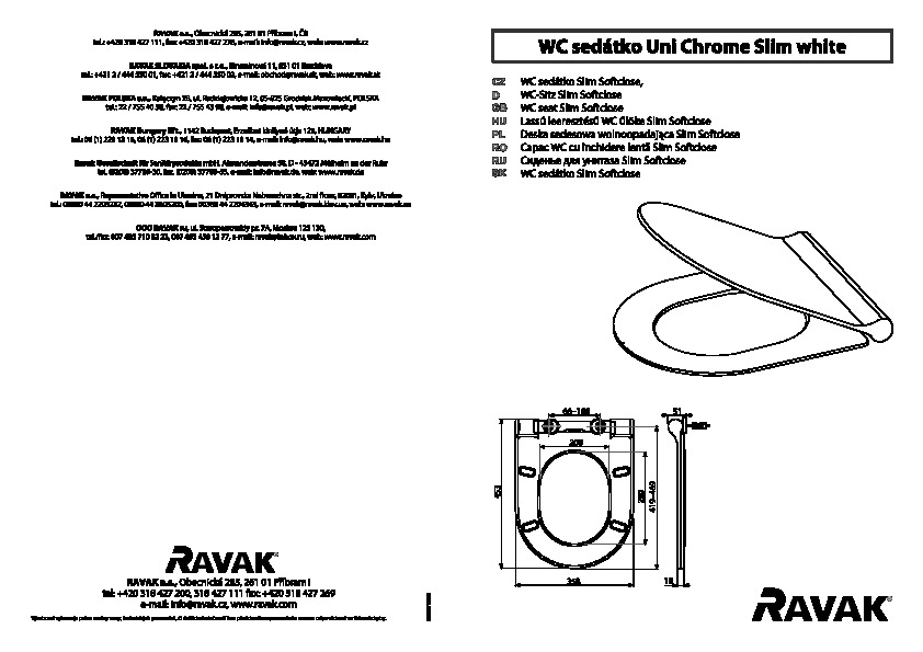 Ravak Vägghängd Toalett Uni Chrome Vit Blank med Bidéfunktion