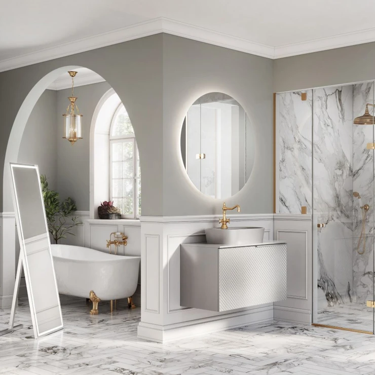 • Genom att kombinera rund form med omgivande belysning erbjuder spegeln visuell balans i alla rum.
