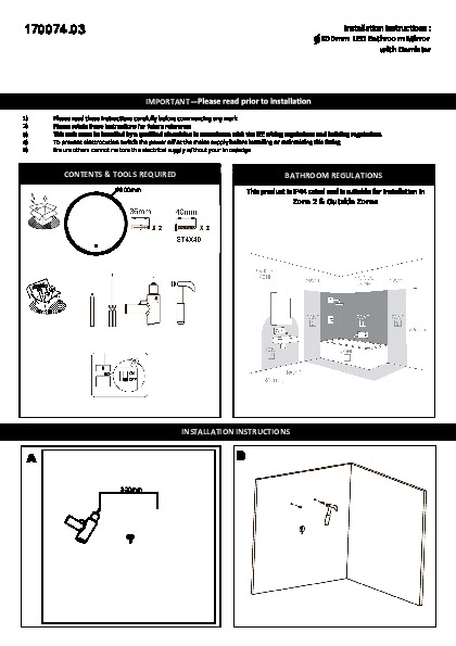 • IP44-klassad konstruktion ger stänkskydd, vilket gör att spegeln kan användas i badrum, men även som dekorativ belysning i andra rum.
