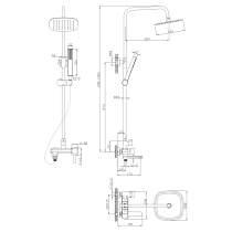 Det justerbara glidfästet gör användningen bekväm, och den manuella omkopplaren integrerad i blandaren gör det enkelt att växla mellan takdusch, handdusch och badkarspip.