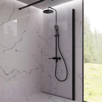 Det justerbara glidfästet ger hög användarkomfort, medan den integrerade kopplingen mellan kolumn och blandare säkerställer ett rent och stilrent utseende.