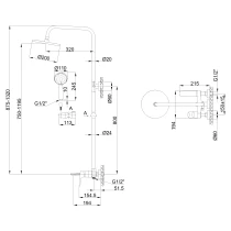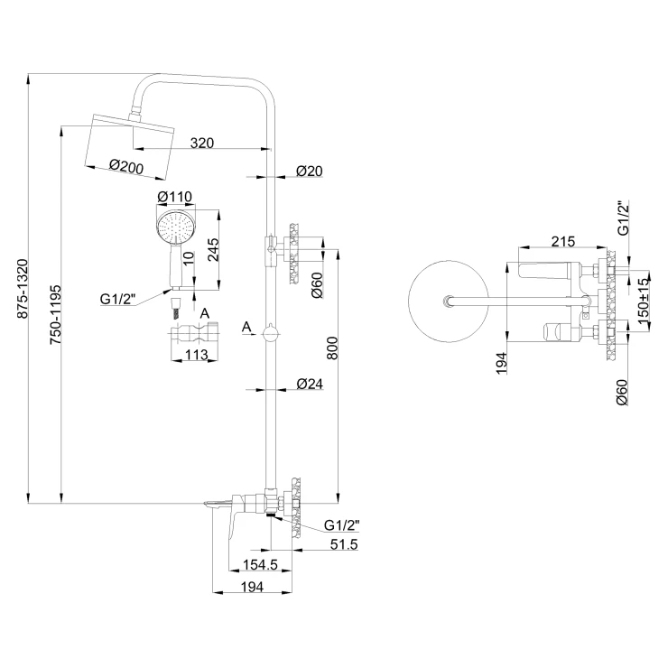 Duschkolumn med Badkarsblandare – Justerbar Höjd 87,5–132 cm