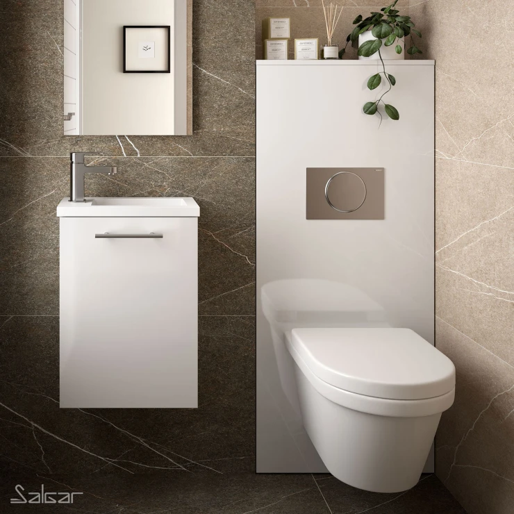 • WC-enheten Nemi är ett stilrent och funktionellt möbelval som döljer inbyggnadscisternen, rör och avlopp. Den ger badrummet ett renare, mer organiserat och rymligt intryck, samtidigt som den bidrar till en modern helhet.