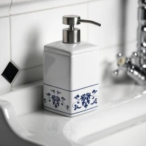 Chantilly-serien erbjuder badrumsaccessoarer i fristående porslin med en tidlös vit och blå design som påminner om klassisk kinesisk keramik. Serien är tillverkad i genomfärgat porslin och omfattar flera användbara detaljer: