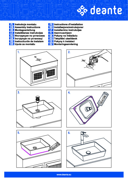 1. För daglig rengöring rekommenderas milda, icke-slipande rengöringsmedel. Deantes egna rengöringsprodukter rekommenderas starkt.