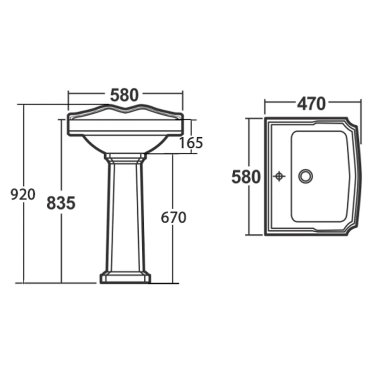 Tvättställ Kensington Vit 60 cm med Pedestal Vit Blank