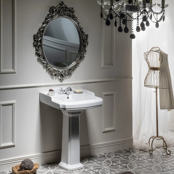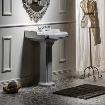 • Piedestalen ger stabilitet och döljer rördragningen för ett stilrent utseende. Med sina mjuka former och tidlösa design passar Kensington perfekt i badrum med klassisk inredning.