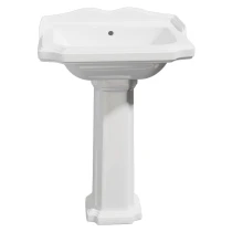 • Kensington är ett elegant tvättställ i klassisk sekelskiftesstil. Setet består av ett keramiskt tvättställ och en matchande piedestal, båda i vit blank finish.