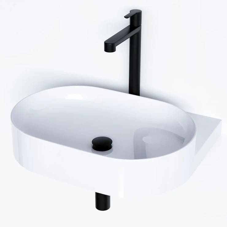 • -Stabilt stöd, inga möbler behövs: Yard installeras direkt på väggen med en stålkonsol, vilket eliminerar behovet av ytterligare möbler. Konsolen matchar tvättställets form och förbättrar helhetsintrycket.