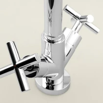 Arvia-kollektionen erbjuder en komplett serie blandare för kök, tvättställ och badrum, utformade i högkvalitativ mässing med blank kromfinish. Med sina mjuka former och tidlösa linjer kombinerar Arvia stilren design med praktisk funktionalitet.