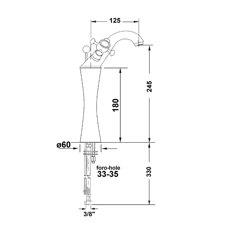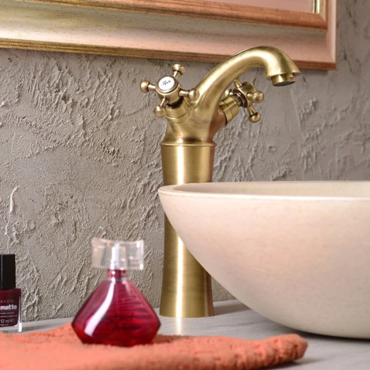 Tvättställsblandare Lancaster Brons Matt med Bottenventil Hög 25 cm