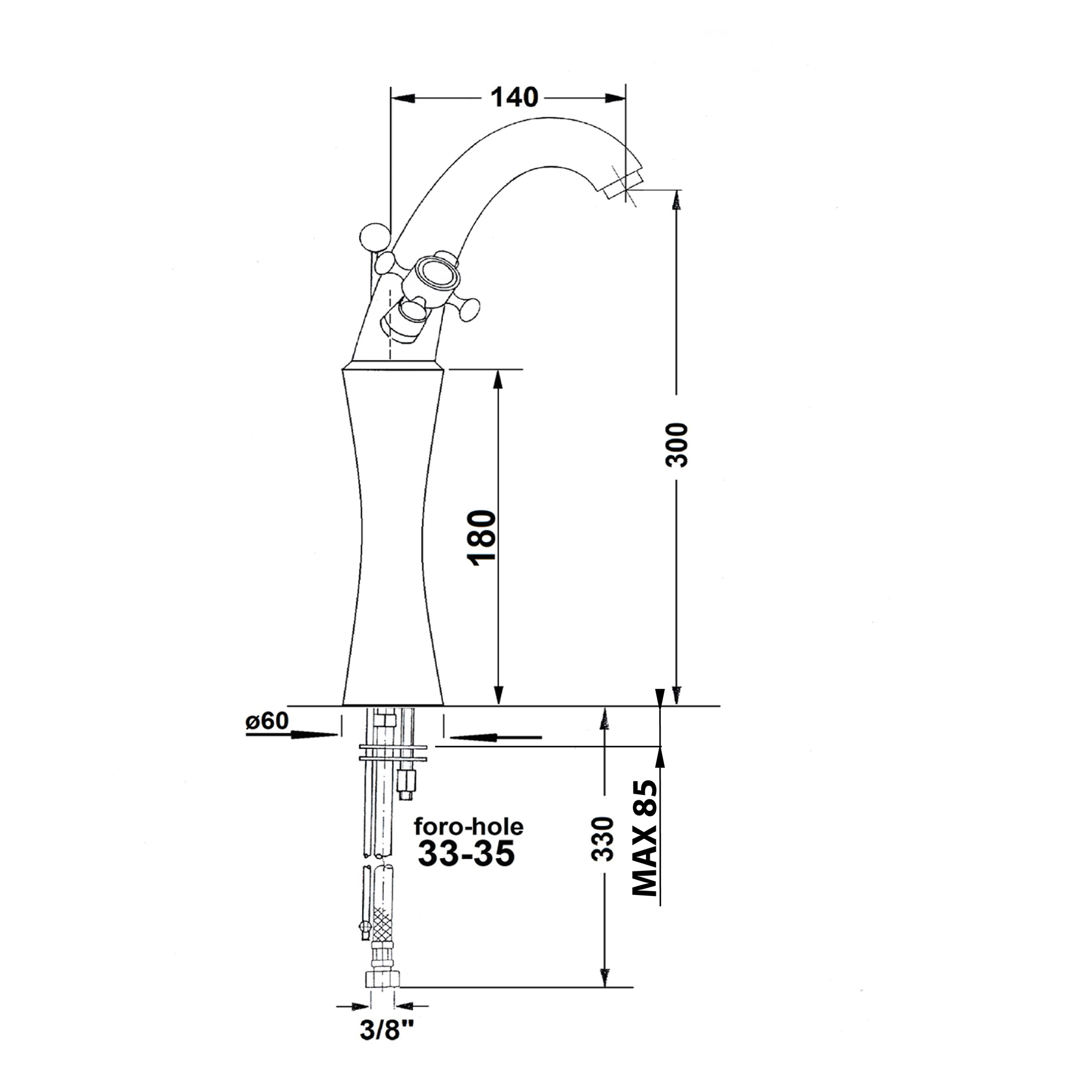 Tvättställsblandare Lancaster Krom Blank med Bottenventil Hög 30 cm