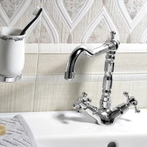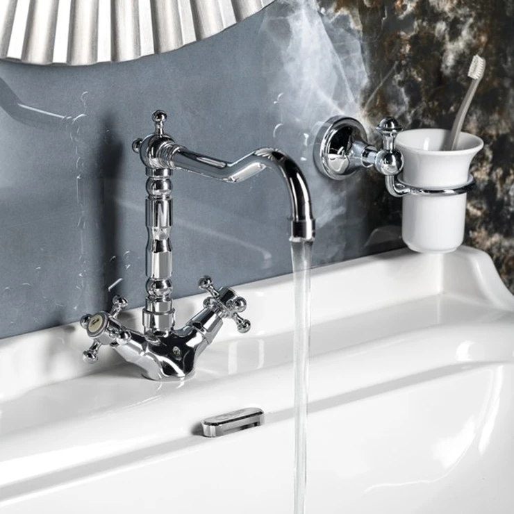Tvättställsblandare Lancaster Krom Blank med Retro Pip & Bottenventil