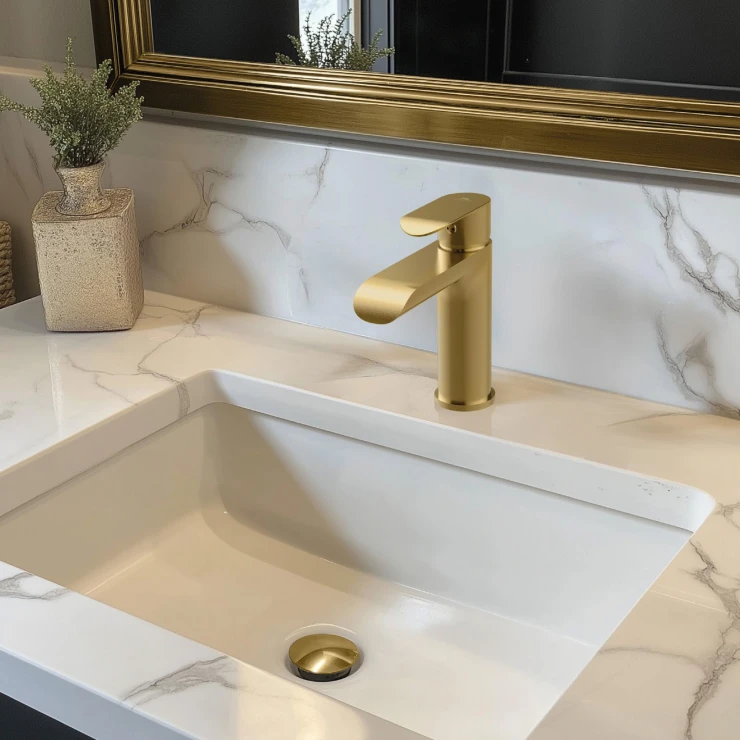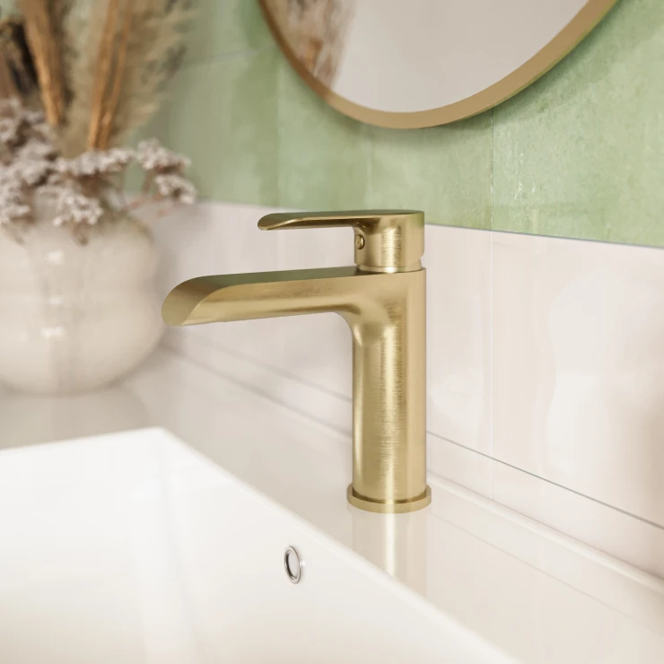 Lore-blandaren i matt guld lyfter vilket badrum som helst med sin sofistikerade och lyxiga design. Med en exklusiv PVD-ytbehandling behåller den sin rika färg och höga hållbarhet över tid.
