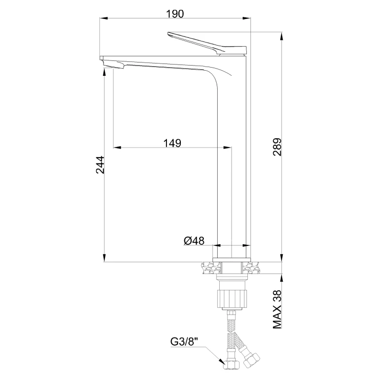 Anslutning vatten: 3/8