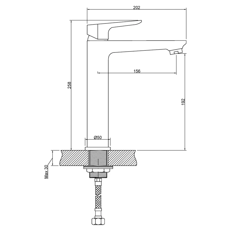 Det snabba monteringssystemet (Quick Fit) gör installationen smidig, och blandaren levereras med två anslutningsslangar 3/8” (40 cm) för enkel inkoppling.