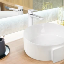 Velinor är perfekt för nyproduktion eller renovering där du vill skapa en enhetlig stil genom hela badrummet. Serien erbjuder ett matchande formspråk från tvättställ till dusch och badkar – och passar särskilt bra för badrum med hög krav på design och kvalitet.