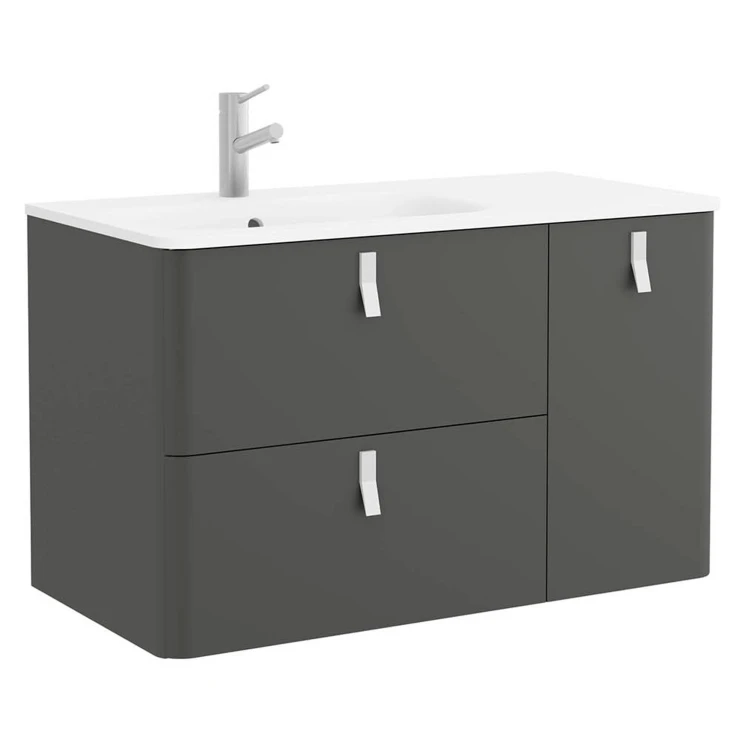 Tvättställsskåp Avrel Antracit Matt Höger 90 cm med Handfat Vit Matt