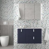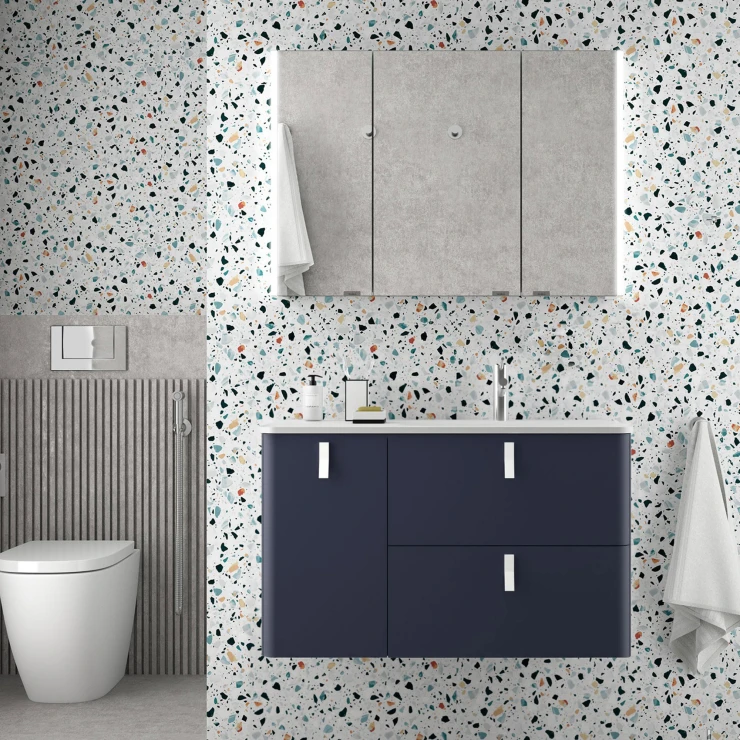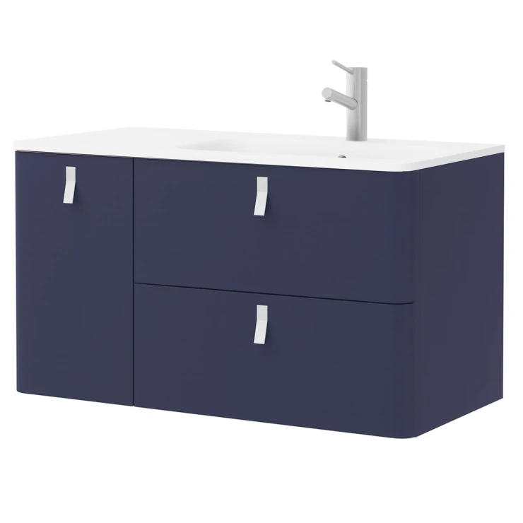 Tvättställsskåp Avrel Mörkblå Matt Vänster 90 cm med Handfat Vit Matt