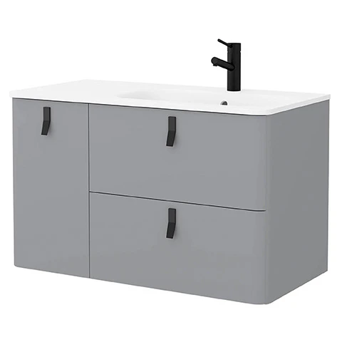 Tvättställsskåp Avrel Rökgrå Matt Vänster 90 cm med Handfat Vit Matt