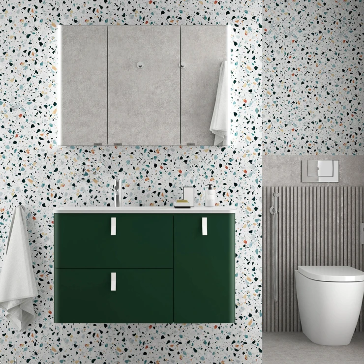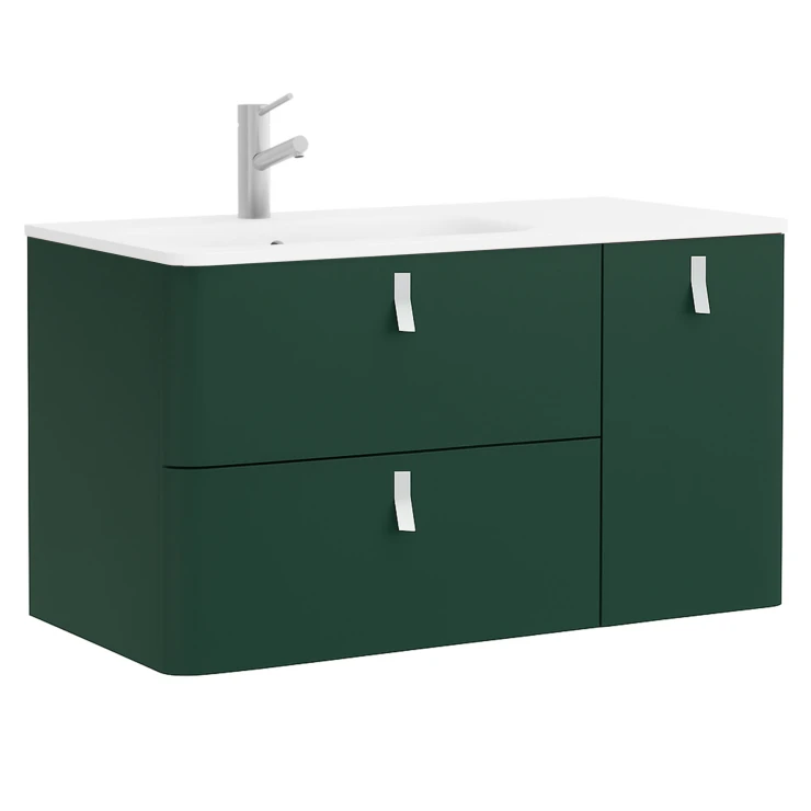 Tvättställsskåp Avrel Royalgrön Matt Höger 90 cm med Handfat Vit Matt