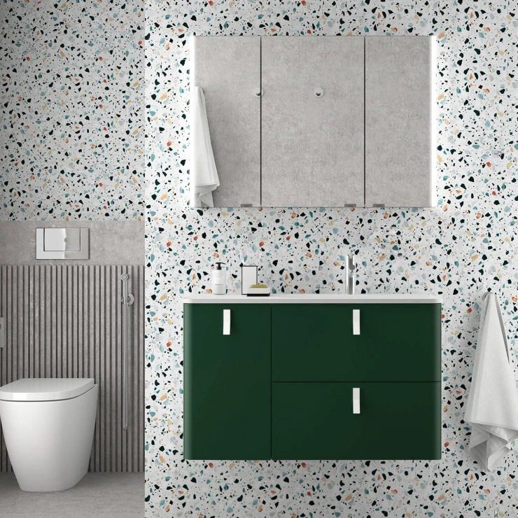 Tvättställsskåp Avrel Royalgrön Matt Vänster 90 cm med Handfat Vit Matt