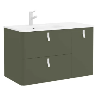 Tvättställsskåp Avrel Skogsgrön Matt Höger 90 cm med Handfat Vit Matt