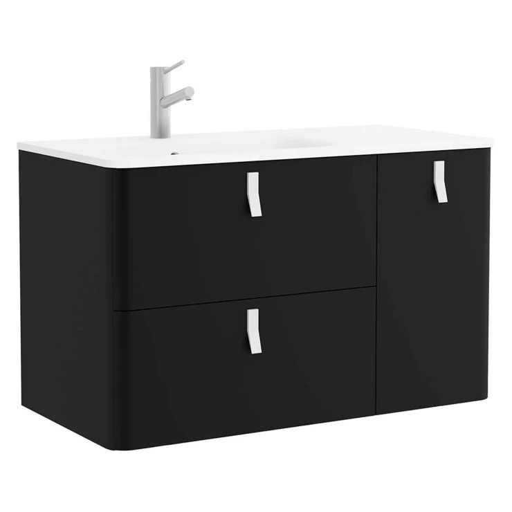 Tvättställsskåp Avrel Svart Matt Höger 90 cm med Handfat Vit Matt