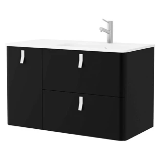 Tvättställsskåp Avrel Svart Matt Vänster 90 cm med Handfat Vit Matt