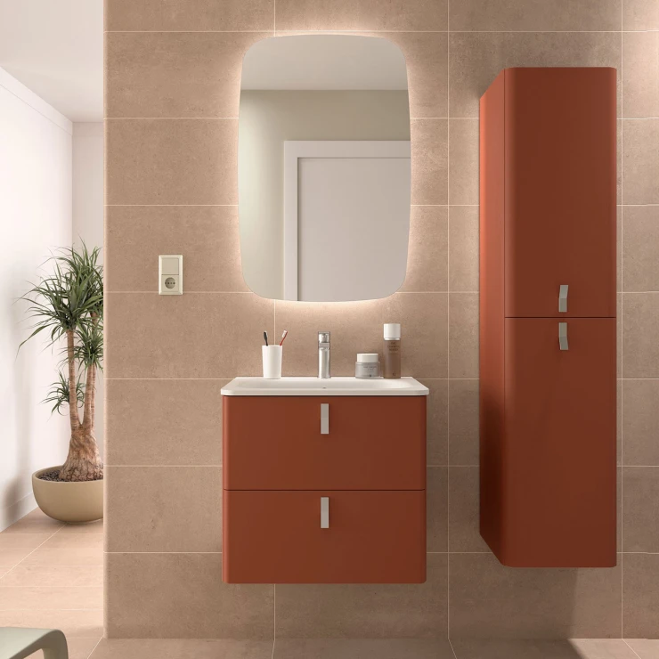 Tvättställsskåp Avrel Terrakotta Matt 60 cm med Handfat Vit Matt & Handtagen Krom