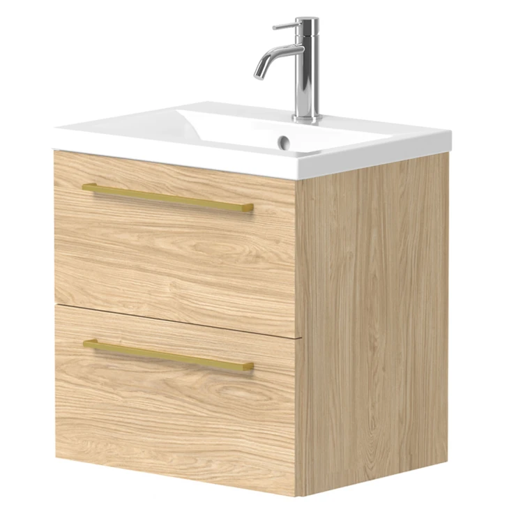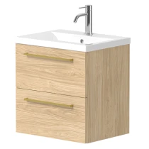Tvättställsskåp Brook Trä Ljus Matt 50 cm med Handfat Vit & Handtagen Guld