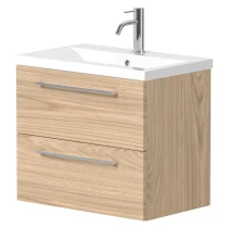 Tvättställsskåp Brook Trä Ljus Matt 60 cm med Handfat Vit & Handtagen Krom
