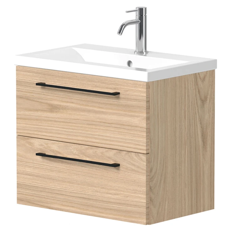 Tvättställsskåp Brook Trä Ljus Matt 60 cm med Handfat Vit & Handtagen Svart
