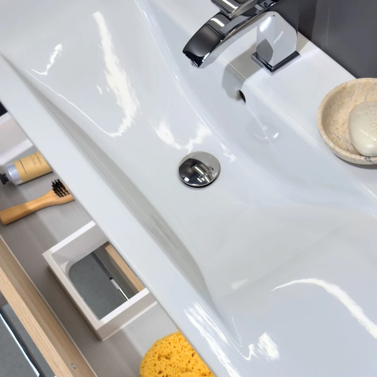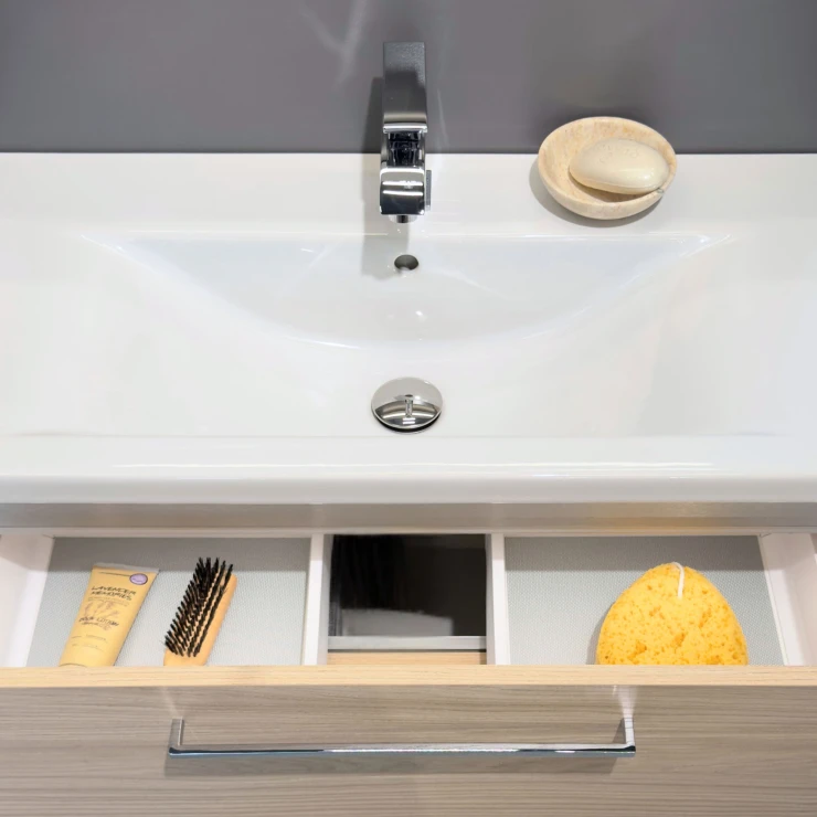 - Tvättställsskåp med fullt utdragbara lådor för enkel åtkomst
