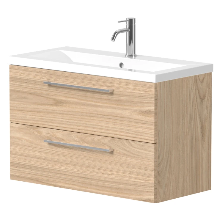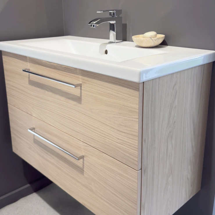 Tvättställsskåp Brook Trä Ljus Matt 80 cm med Handfat Vit & Handtagen Krom