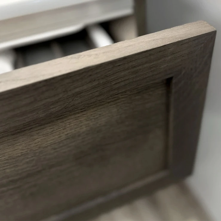 - Fasader: Fanér i blekt eller rökt ek med massiv träram för en autentisk och rustik känsla.