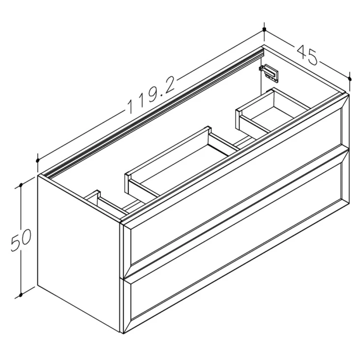 - Skåp med 2 lådor och tvättställ i keramik: Det högkvalitativa tvättstället i keramik erbjuder hållbarhet, funktion och en klassisk estetik.
