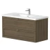 Tvättställsskåp Craftwood Ek Matt 100 cm med Handfat Vit Blank & Handtagen Antik Mässing