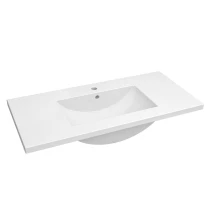 Tvättställsskåp Craftwood Ekfaner Spring Matt 100 cm med Handfat Vit Blank & Handtagen Antik Mässing