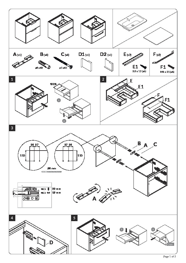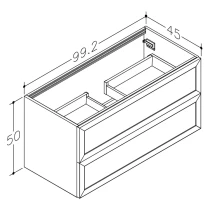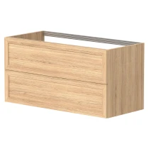 - Skåp med 2 lådor och tvättställ i keramik: Det högkvalitativa tvättstället i keramik erbjuder hållbarhet, funktion och en klassisk estetik.